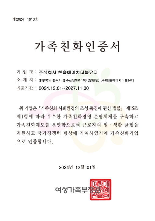 가족친화인증서