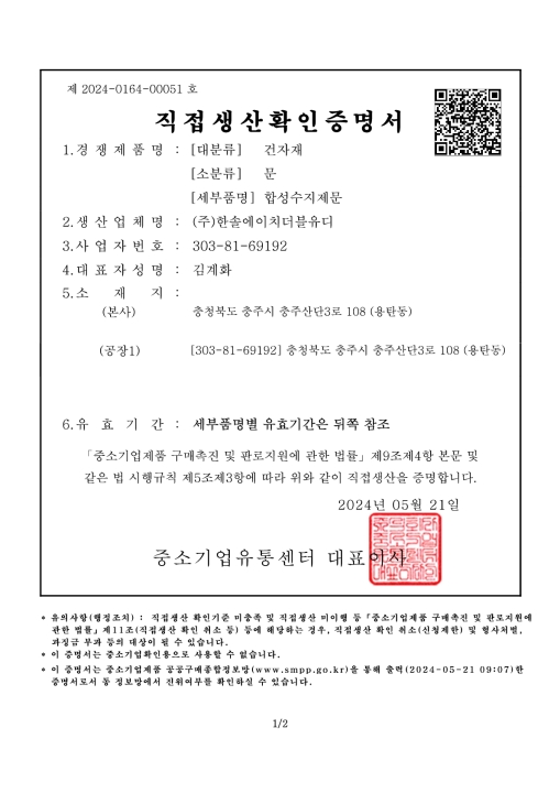 직접생산증명서 (문)