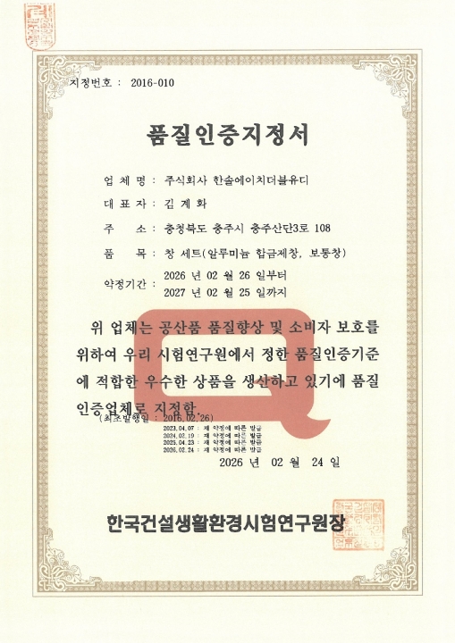 품질인증지정서
